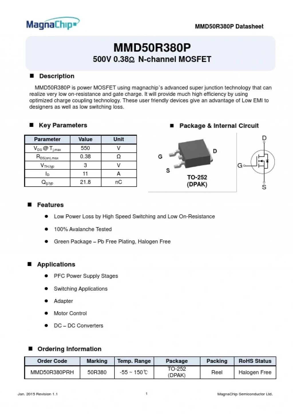 50R380, MMD50R380P, N-channel MOSFET, 500 VOLT, 11 AMPER , LED DRIVER, FET , SAMSUNG 50R380, MMD50R380P, N-channel MOSFET, 500 VOLT, 11 AMPER , LED DRIVER, FET 1 ADET.