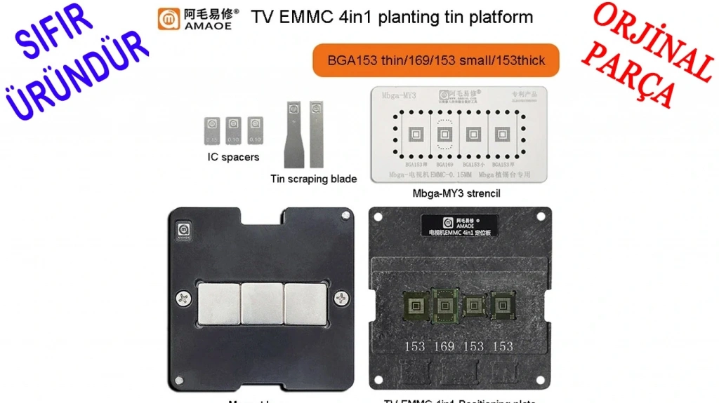 EMMC, STENCIL, Amaoe, Phone, TV, EMMC, 4 In 1, Reballing, Stencil, Jig, Platform, Televizyon , Emmc,Kalıplama, Seti